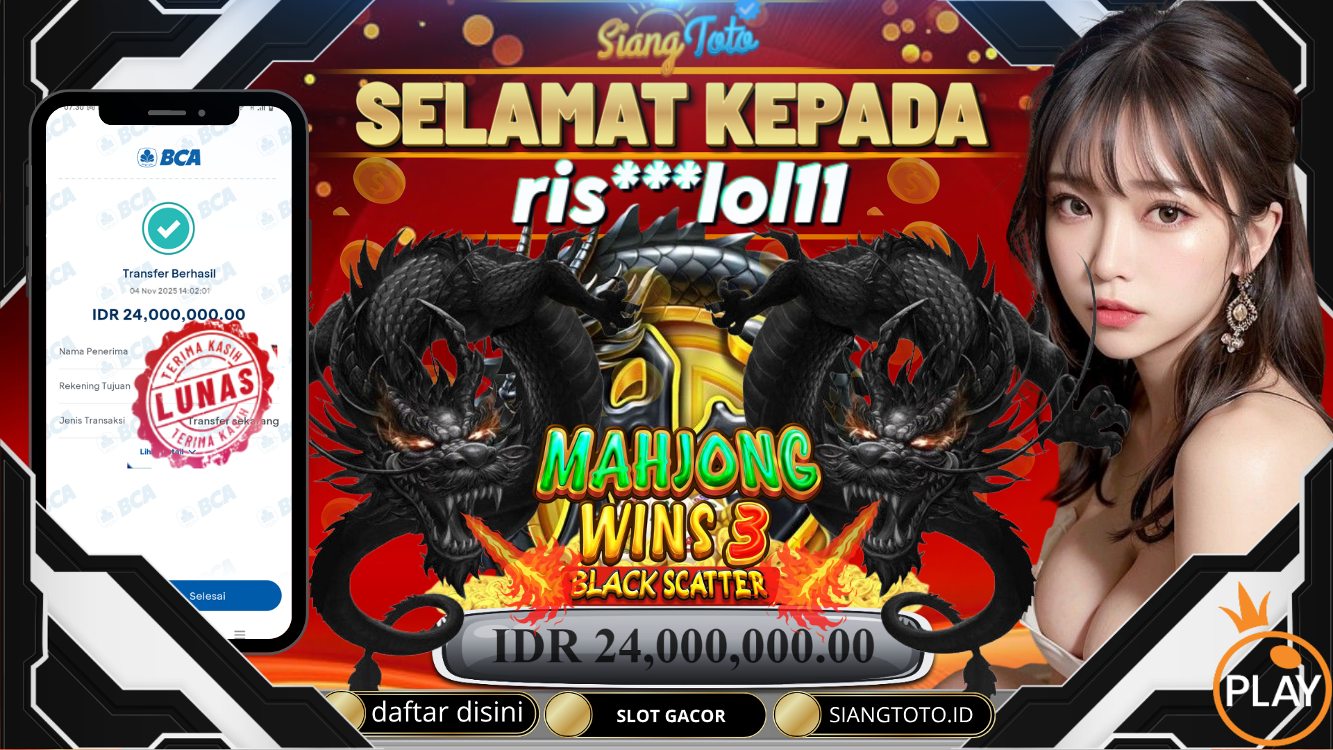 BUKTI JACKPOT SLOT MAHJONG WINS3 BLACK SCATER