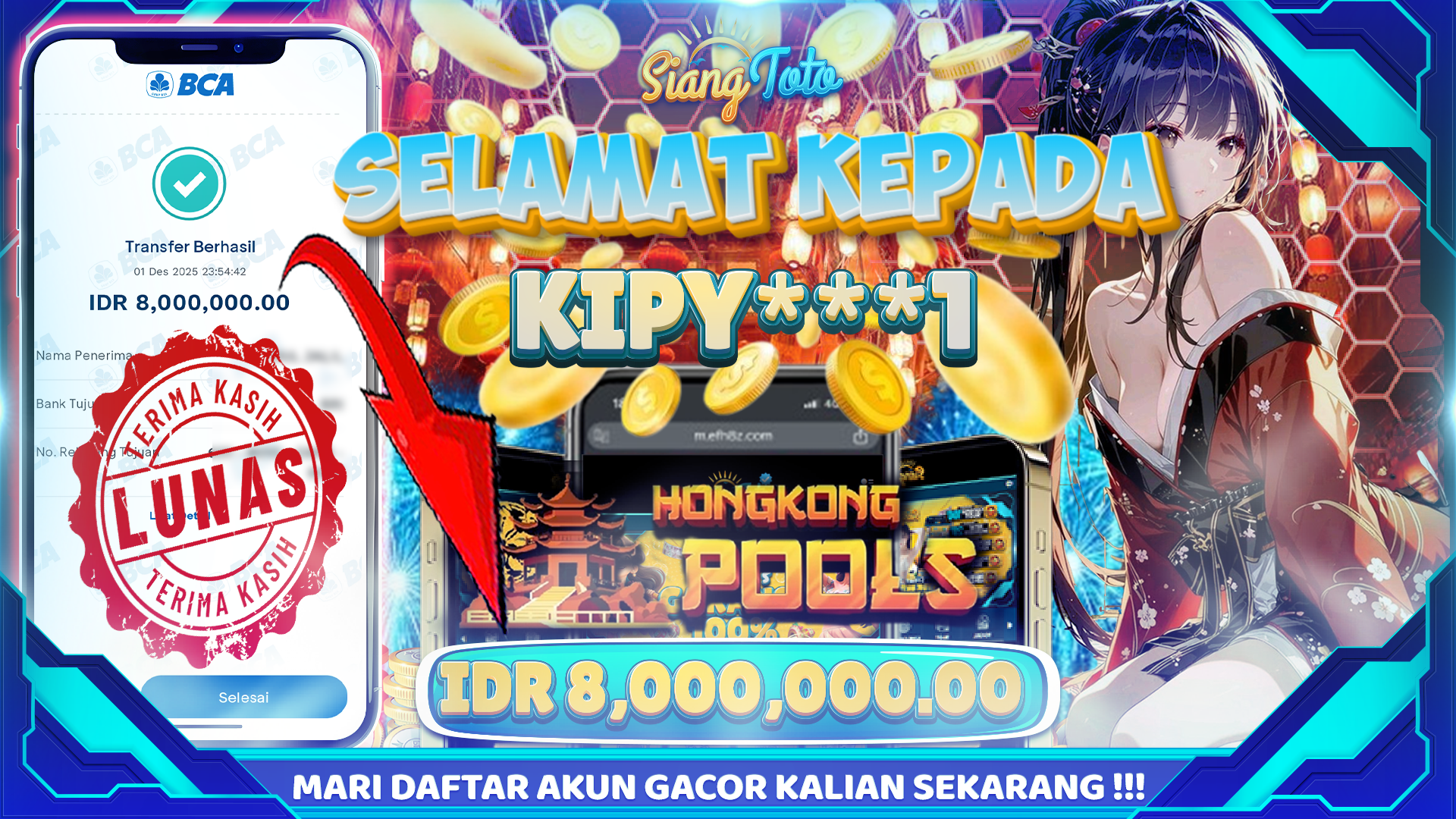 BUKTI JACKPOT HONGKONG POOLS 1 Desember 2025 Posted by admin HONGKONG POOLS SENIN, 01 DESEMBER 2025 RP.8,000,000 – SELAMAT KEPADA PEMENANG SALAM JACKPOT Updated: 1 Desember 2025 at 11:29 PM ◀ BUKTI JACKPOT LUCKY NEKO PREDIKSI BULLSEYE ▶