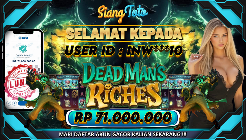BUKTI JACKPOT DEADMANS RICHES 22 Februari 2026 Posted by Admin Siangtoto DEADMANS RICHES Minggu, 22 Februari 2026 RP 71,000,000 – SELAMAT KEPADA PEMENANG SALAM JACKPOT Updated: 22 Februari 2026 at 5:58 AM ◀ PREDIKSI TOGEL BULLSEYE BUKTI JACKPOT GATES OF OLYMPUS ▶