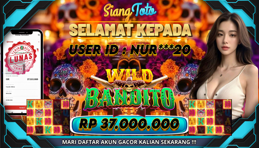 BUKTI JACKPOT WILD BANDITO 25 Februari 2026 Posted by Admin Siangtoto WILD BANDITO Rabu, 25 Februari 2026 RP 37,000,000 – SELAMAT KEPADA PEMENANG SALAM JACKPOT Updated: 25 Februari 2026 at 6:52 AM ◀ BUKTI JACKPOT KNOCKOUT RICHES BUKTI JACKPOT DRAGON KINGDOM EYES OF FIRE ▶