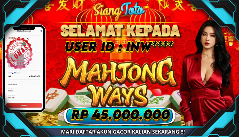 BUKTI JACKPOT MAHJONG WAYS 26 Februari 2026 Posted by Admin Siangtoto MAHJONG WAYS Kamis, 26 Februari 2026 RP 45,000,000 – SELAMAT KEPADA PEMENANG SALAM JACKPOT Updated: 26 Februari 2026 at 7:14 AM ◀ PREDIKSI TOGEL BULLSEYE BUKTI JACKPOT OISHI DELIGHTS ▶