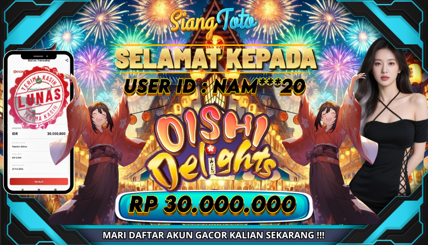 BUKTI JACKPOT OISHI DELIGHTS 26 Februari 2026 Posted by Admin Siangtoto OISHI DELIGHTS Kamis, 26 Februari 2026 RP 30,000,000 – SELAMAT KEPADA PEMENANG SALAM JACKPOT Updated: 26 Februari 2026 at 7:42 AM ◀ BUKTI JACKPOT MAHJONG WAYS BUKTI JACKPOT CAISHEN WINS ▶