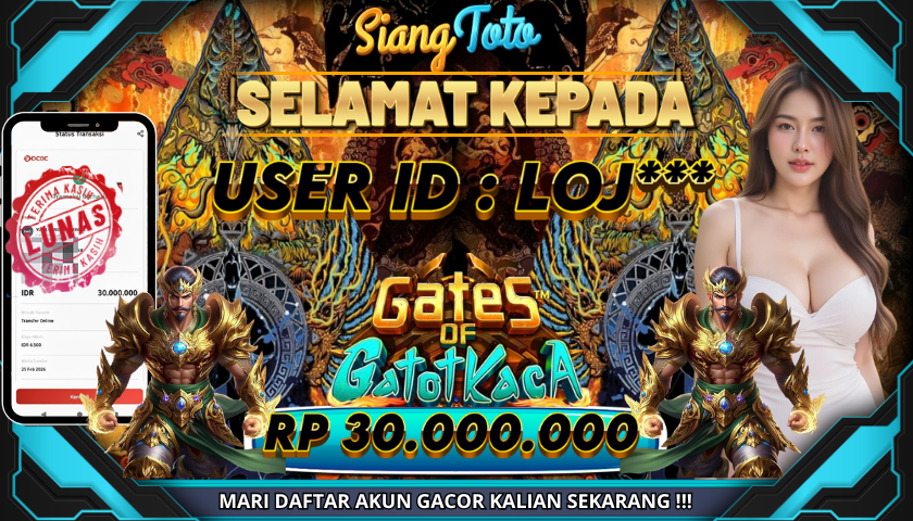 BUKTI JACKPOT GATES OF GATOTKACA 27 Februari 2026 Posted by Admin Siangtoto GATES OF GATOTKACA Jumat, 27 Februari 2026 RP 30,000,000 – SELAMAT KEPADA PEMENANG SALAM JACKPOT Updated: 27 Februari 2026 at 7:50 AM ◀ BUKTI JACKPOT JOKER’S JEWELS BUKTI JACKPOT SUPER GOLF DRIVE ▶
