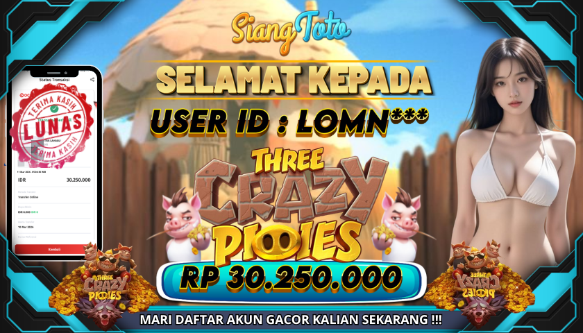 BUKTI JACKPOT THREE CRAZY PIGGIES 11 Maret 2026 Posted by Admin Siangtoto THREE CRAZY PIGGIES Rabu, 11 Maret 2026 RP 30,250,000 – SELAMAT KEPADA PEMENANG SALAM JACKPOT Updated: 11 Maret 2026 at 6:22 AM ◀ BUKTI JACKPOT GEISHA’S REVENGE BUKTI JACKPOT CANDY VILLAGE ▶