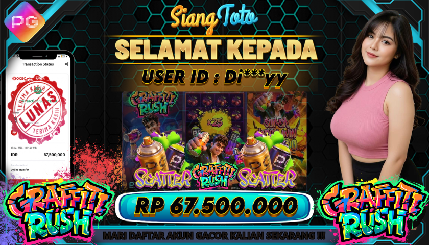 BUKTI JACKPOT GRAFFITI RUSH 15 Maret 2026 Posted by Admin Siangtoto GRAFFITI RUSH Minggu, 15 Maret 2026 RP 67,500,000 – SELAMAT KEPADA PEMENANG SALAM JACKPOT Updated: 15 Maret 2026 at 7:50 PM ◀ BUKTI JACKPOT MYSTERIOUS EGYPT Prediksi Toto Wuhan ▶