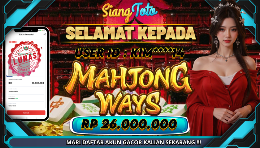 BUKTI JACKPOT MAHJONG WAYS 19 Maret 2026 Posted by Admin Siangtoto MAHJONG WAYS Kamis, 19 Maret 2026 RP 26,000,000 – SELAMAT KEPADA PEMENANG SALAM JACKPOT Updated: 19 Maret 2026 at 6:28 AM ◀ PREDIKSI TOGEL BULLSEYE BUKTI JACKPOT WAYS OF THE QILIN ▶
