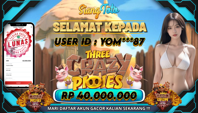 BUKTI JACKPOT THREE CRAZY PIGGIES 25 Maret 2026 Posted by Admin Siangtoto THREE CRAZY PIGGIES Rabu, 25 Maret 2026 RP 40,000,000 – SELAMAT KEPADA PEMENANG SALAM JACKPOT Updated: 25 Maret 2026 at 6:33 AM ◀ PREDIKSI TOGEL BULLSEYE BUKTI JACKPOT KNOCKOUT RICHES ▶