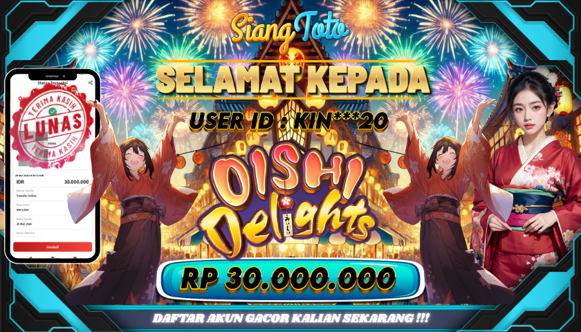 BUKTI JACKPOT OISHI DELIGHTS 30 Maret 2026 Posted by Admin Siangtoto OISHI DELIGHTS Senin, 30 Maret 2026 RP 30,000,000 – SELAMAT KEPADA PEMENANG SALAM JACKPOT Updated: 30 Maret 2026 at 6:31 AM ◀ PREDIKSI TOGEL BULLSEYE BUKTI JACKPOT MAHJONG WAYS ▶