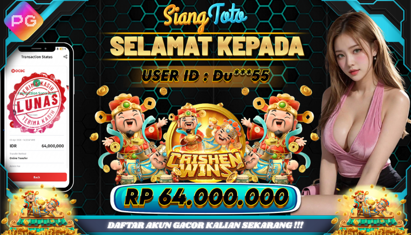 BUKTI JACKPOT CAISHEN WINS 2 April 2026 Posted by Admin Siangtoto CAISHEN WINS Kamis, 02 April 2026 RP 64,000,000 – SELAMAT KEPADA PEMENANG SALAM JACKPOT Updated: 2 April 2026 at 2:56 PM ◀ BUKTI JACKPOT HOCKEY ATTACK Prediksi Toto Wuhan ▶