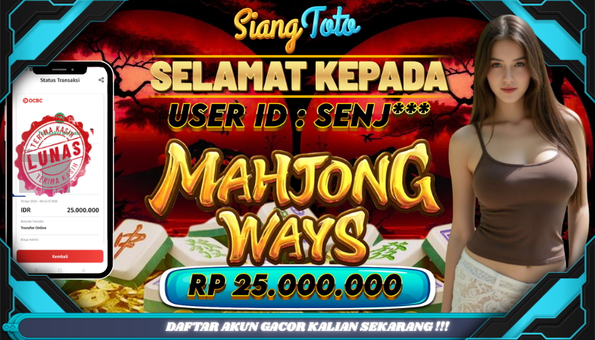 BUKTI JACKPOT MAHJONG WAYS 10 April 2026 Posted by Admin Siangtoto MAHJONG WAYS Jumat, 10 April 2026 RP 25,000,000 – SELAMAT KEPADA PEMENANG SALAM JACKPOT Updated: 10 April 2026 at 2:50 PM ◀ BUKTI JACKPOT WAYS OF THE QILIN BUKTI JACKPOT WILD BANDITO ▶